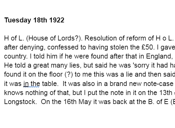 Extract from 5th Earl of Harewood’s Diary 1922