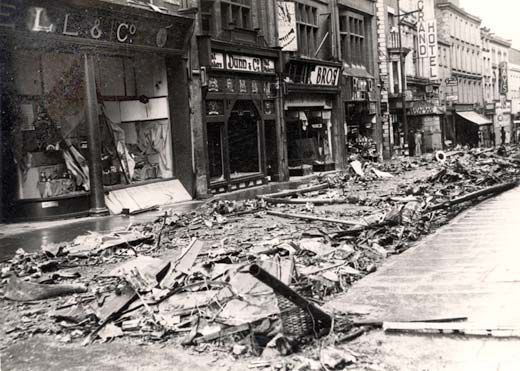 A photograph taken after a bombing raid in Newark, 1941. This photograph is uncensored.