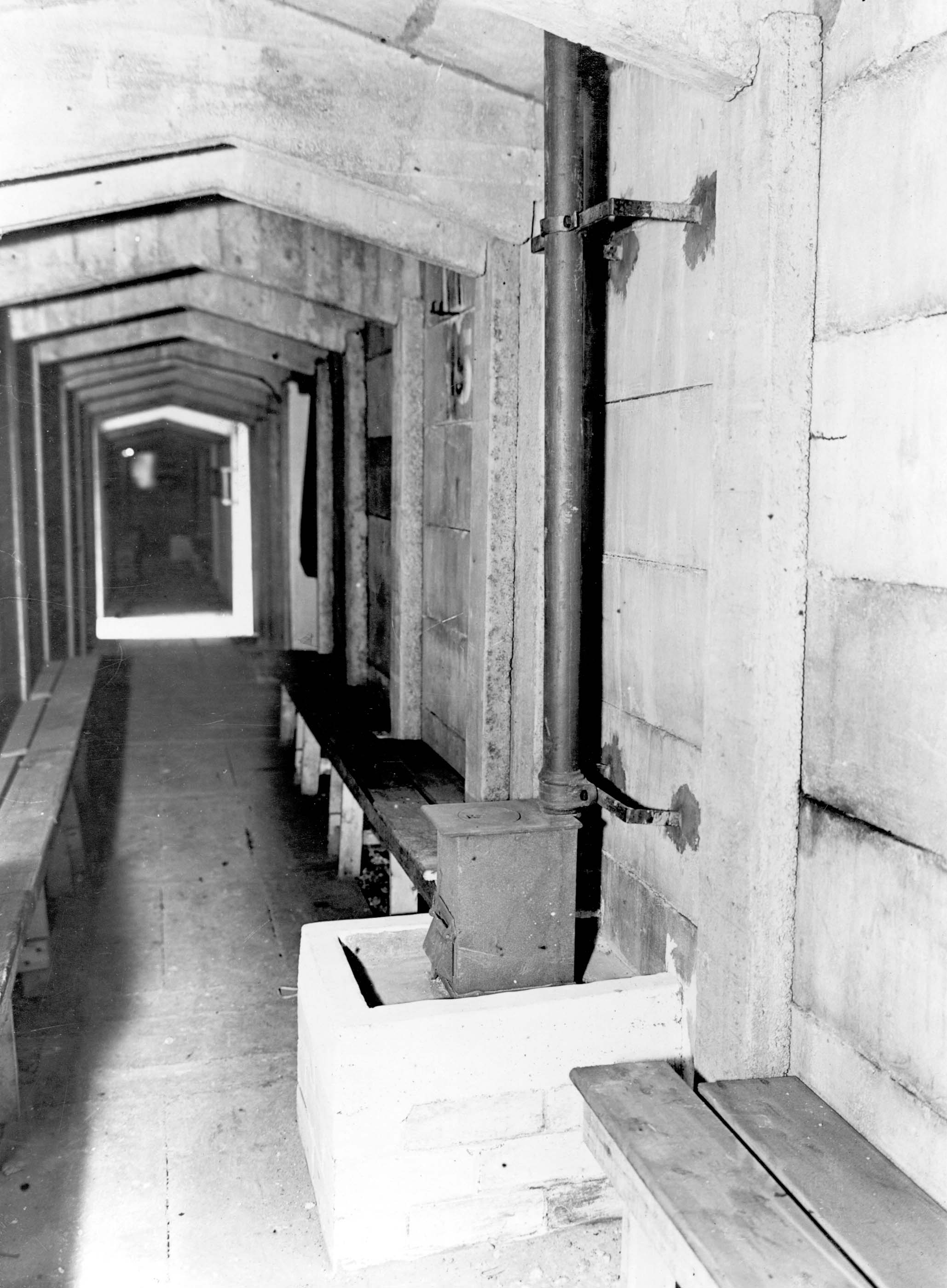 An interior view of the air raid shelter under East End Park, taken 8th November 1941. This was a public air raid shelter to support the families living in the back-to-back houses nearby. Leeds only had seven bombing raids over the period of the Second World War.