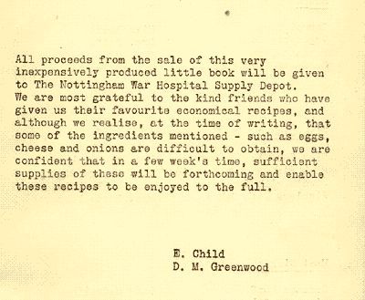 Extract From Nottingham Wartime Recipe Book
