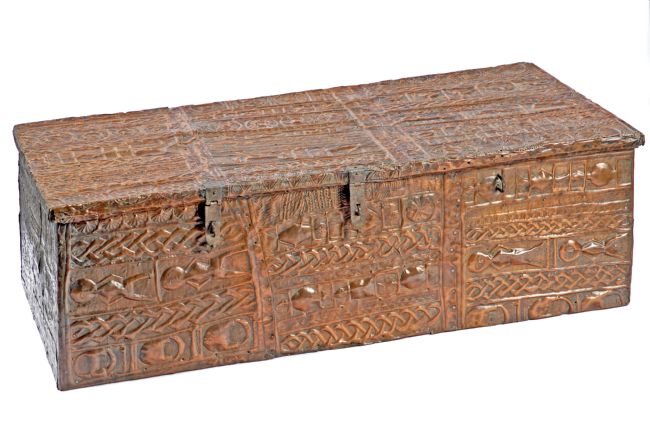 This copper covered Asante treasure chest was used for storing items with strong personal associations or value