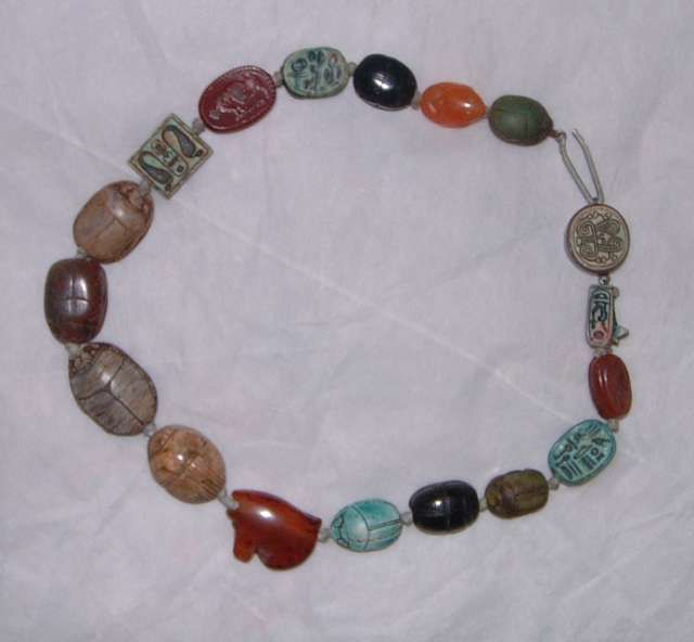 Bead necklace with amulets