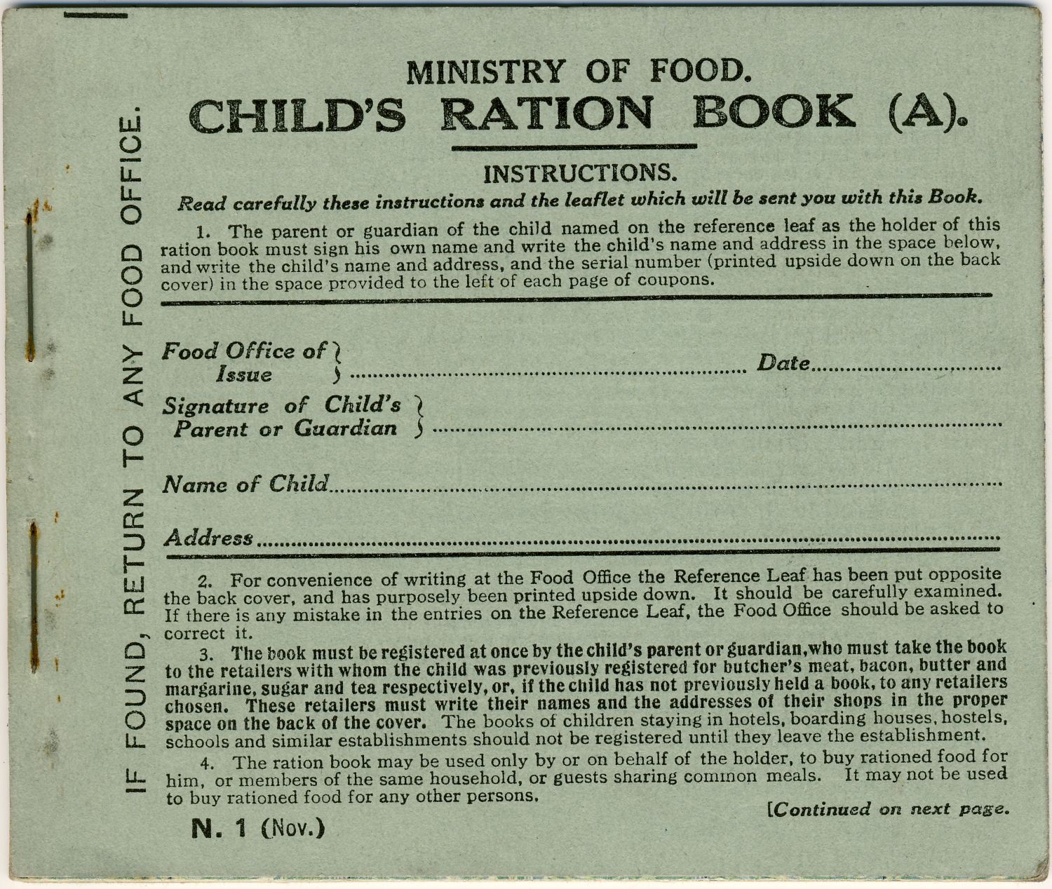 Child's Ration Book