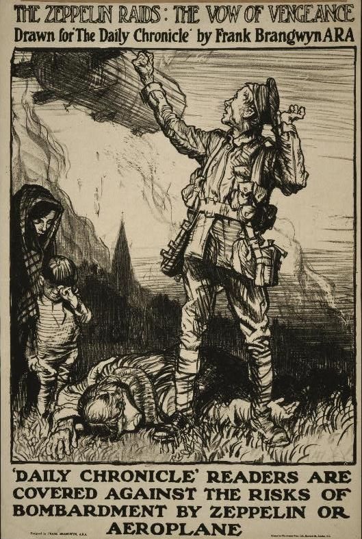 Advertisement published in the Daily Chronicle Newspaper, responding to the German Zeppelin raids and offering readers of the newspaper coverage 'against the risks of bombardment by zeppelin or airship'. Image: © Library of Congress (3g11189v)