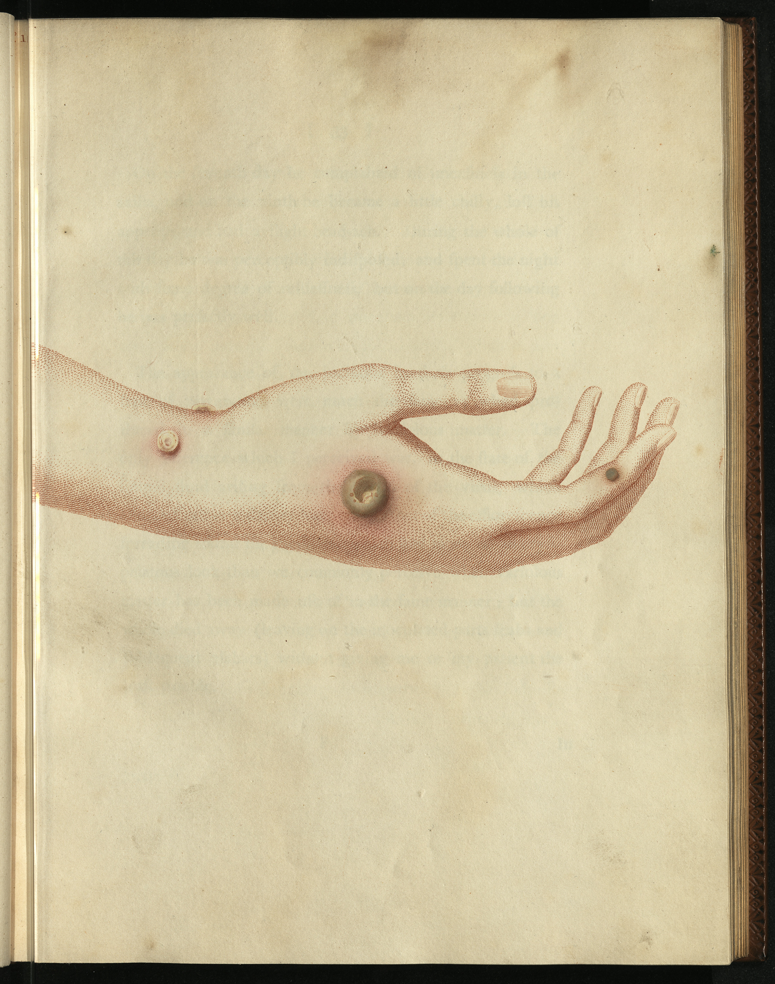 Drawing of cowpox infection of milkmaid Sarah Nelmes' arm, as part of Jenner’s experiment into vaccination for smallpox.