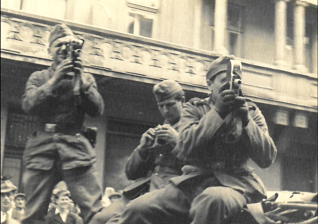 The Nazis were assisted in their campaign of genocide by collaborators from countries other than Germany. This photograph shows German soldiers photographing an attack on Jews in Lviv, in the Ukraine in 1942.