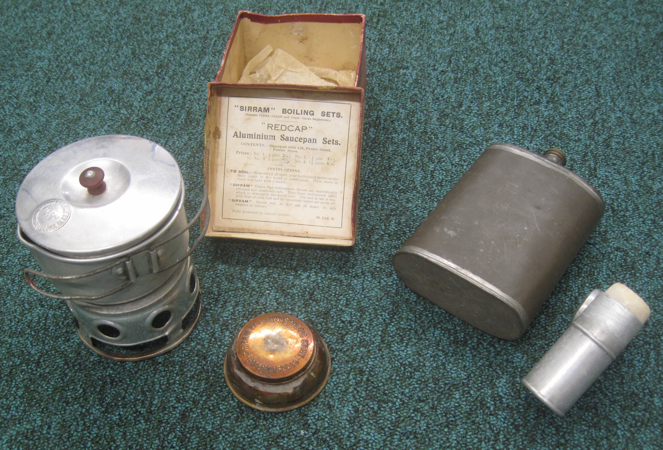 Selection of items including a meths - methylated spirits - stove and fuel used by Girl Guides on Guide International Service expeditions during WW2.
