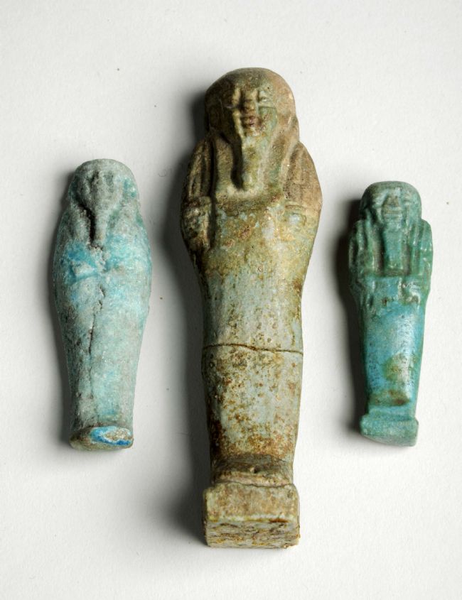 Group of three Shabtis that would have been put inside the dead person's tomb to act as servants in the afterlife.