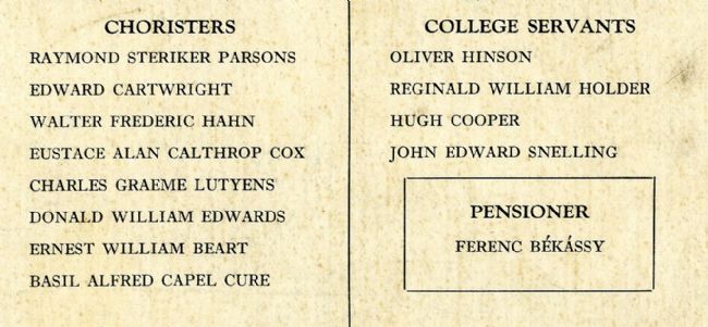 Ferenc Békássy's name was later added to the memorial for King's College alumni killed during the First World War, which is located in the King’s College Memorial Chapel