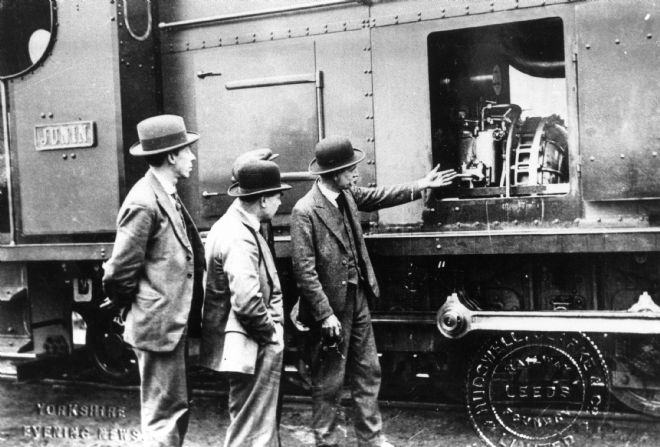Junin being inspected by managers of Hudswell Clarke, who built her.