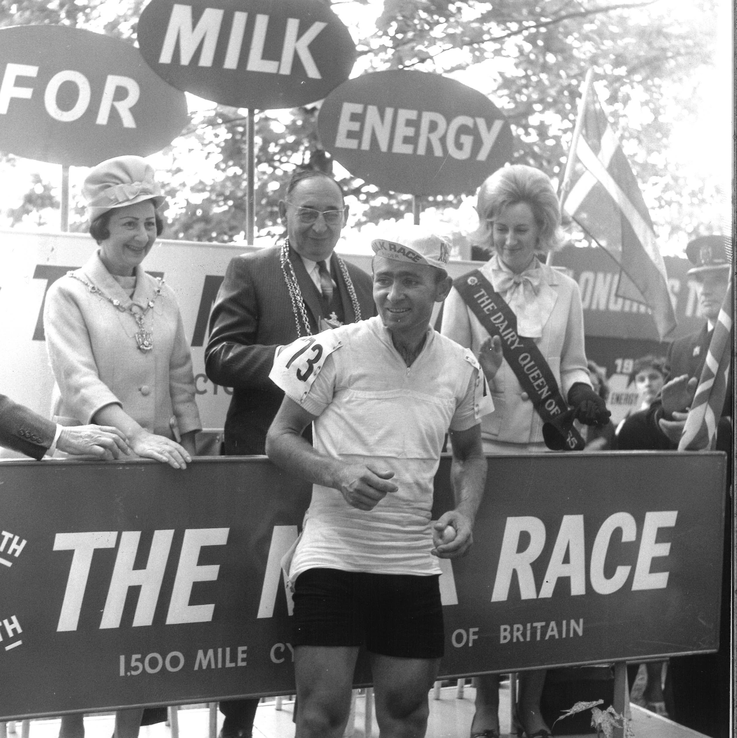 Milk Race Prize Giving 28th June 1966 The 'Milk Race' was a 1500 mile cycling competition held in Britain. The stage prize in the 15th tour of Britain was presented by Alderman J S Walsh, Lord Mayor of Leeds. The first Tour took place in 1951 and in 1958 the Milk Marketing Board took over the promotion.