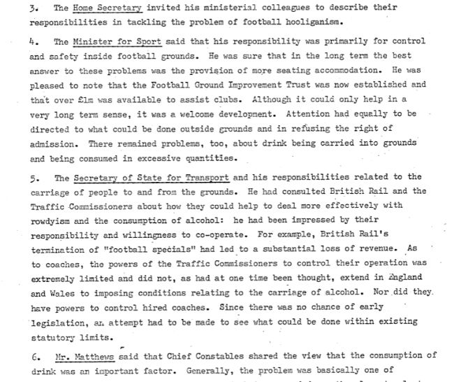 Minutes from Home Office Meeting on Hooliganism, 1976