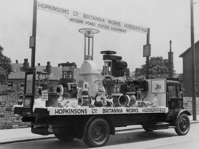 Power Station equipment manufactured by Hopkinsons Ltd in Huddersfield proudly displayed on one of their lorries.