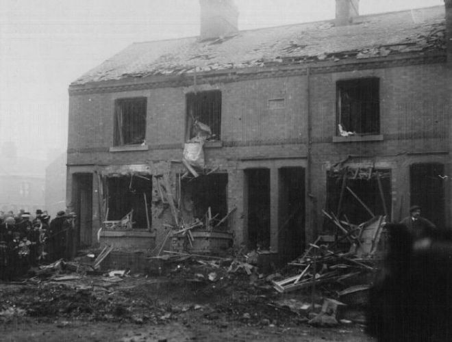 The bombed home of the Page family at 87 Empress Road, Loughborough. Three members of the family were killed during a German Zeppelin raid in 1916. Image: © Loughborough-RollofHonour.com