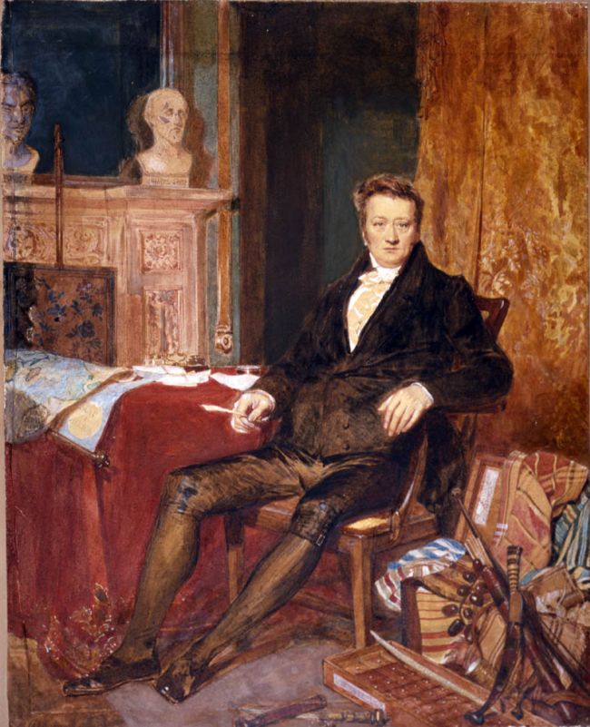 Thomas Clarkson with his treasure chest of samples of African produce. Painting by AE Chalon.