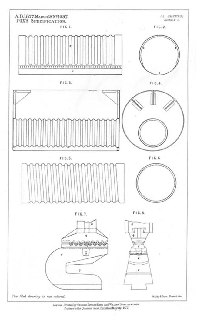 Samson Fox's 1877 patent for the Fox Corrugated boiler flue, used in ship boilers