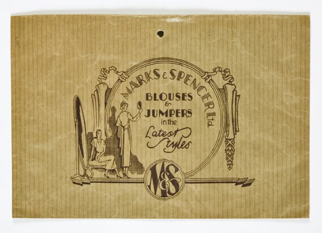 M&S branded carrier bags were used from as early as the 1900s. There have been lots of different designs, slogans and materials used. The earliest paper bags carried an illustration of the Head Office building in Manchester, and listed all the stores in the country © M&S Company Archive