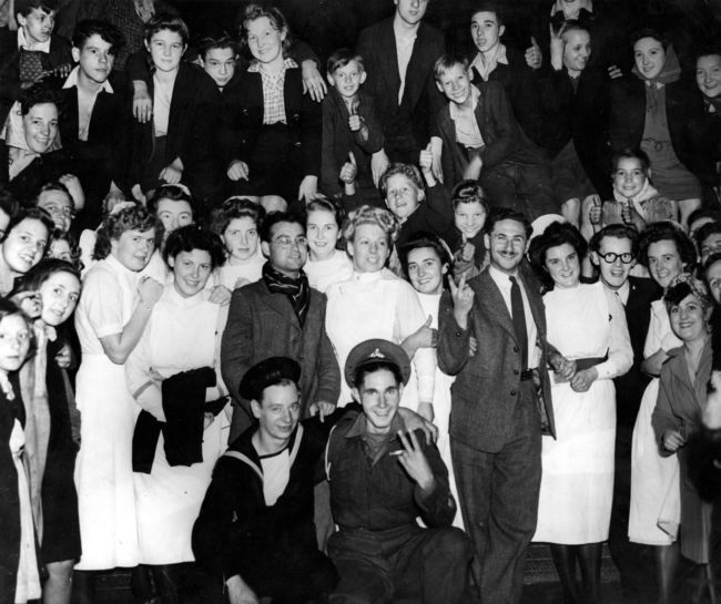 Celebrations went on until the small hours when the Second World War finally ended. This picture, showing revellers in Leeds was taken at 1.30am on Victory in Japan Day, 15 August 1945 © Yorkshire Post Newspapers