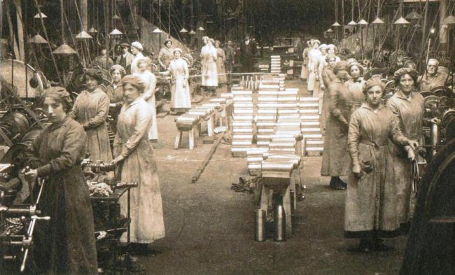 A munitions factory in Halifax in the First World War. Many women chose to work in these industries rather than domestic service.