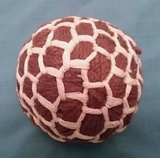 This weftie is made from leftover woollen yarn and is a replica of those made when weaving was a cottage industry. Wefties were often used as cricket balls as the workers would have been too poor to buy real cricket balls.