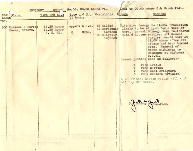 Incident Report from Bombing Raid in Newark 1941