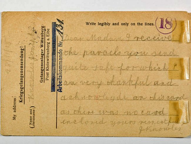 Reverse of Card Sent by WW1 PoW