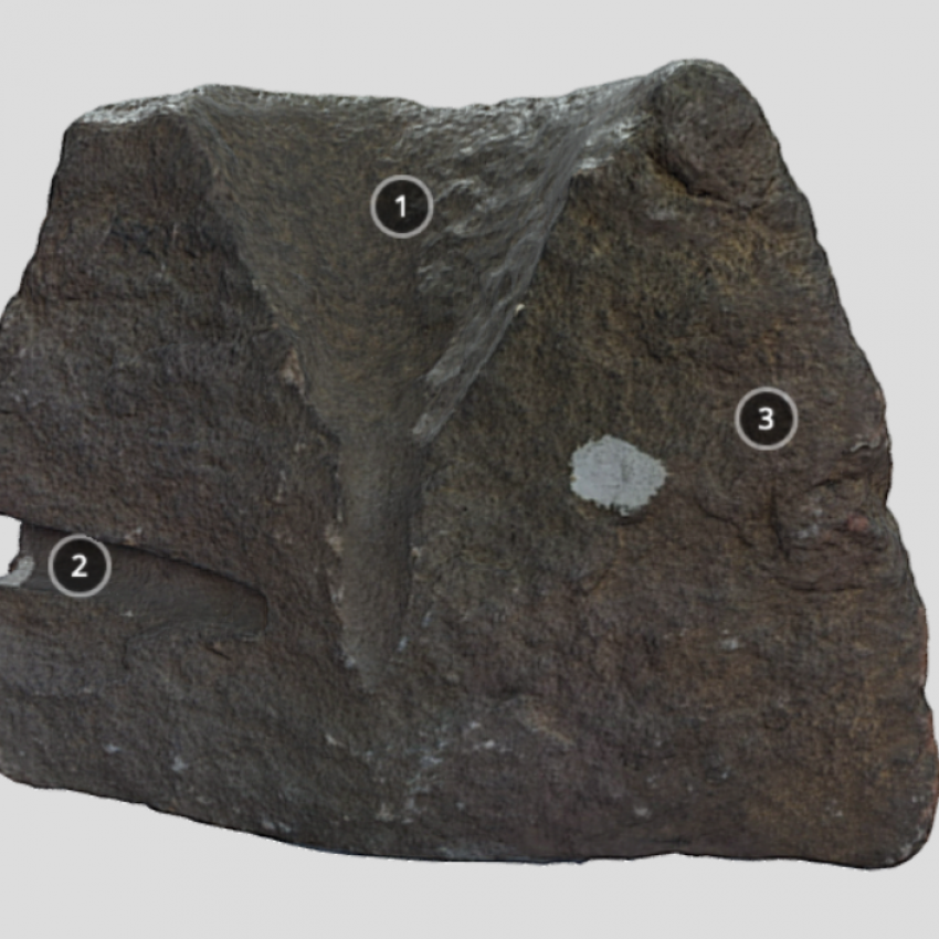 This is a cross section of a beehive rotary quern. Grain was poured into the hole at the top and filtered down to be crushed between a second, round flat, stone.