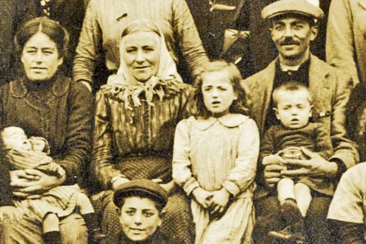 Detail from a photograph of Belgian Refugees at Nelson, Lancashire in 1914