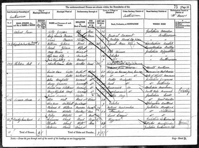 Census Page 1881, Showing Shibden Hall