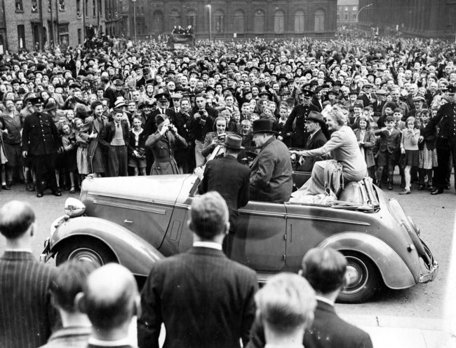 Sir Winston and Lady Churchill visiting Leeds in June 1945