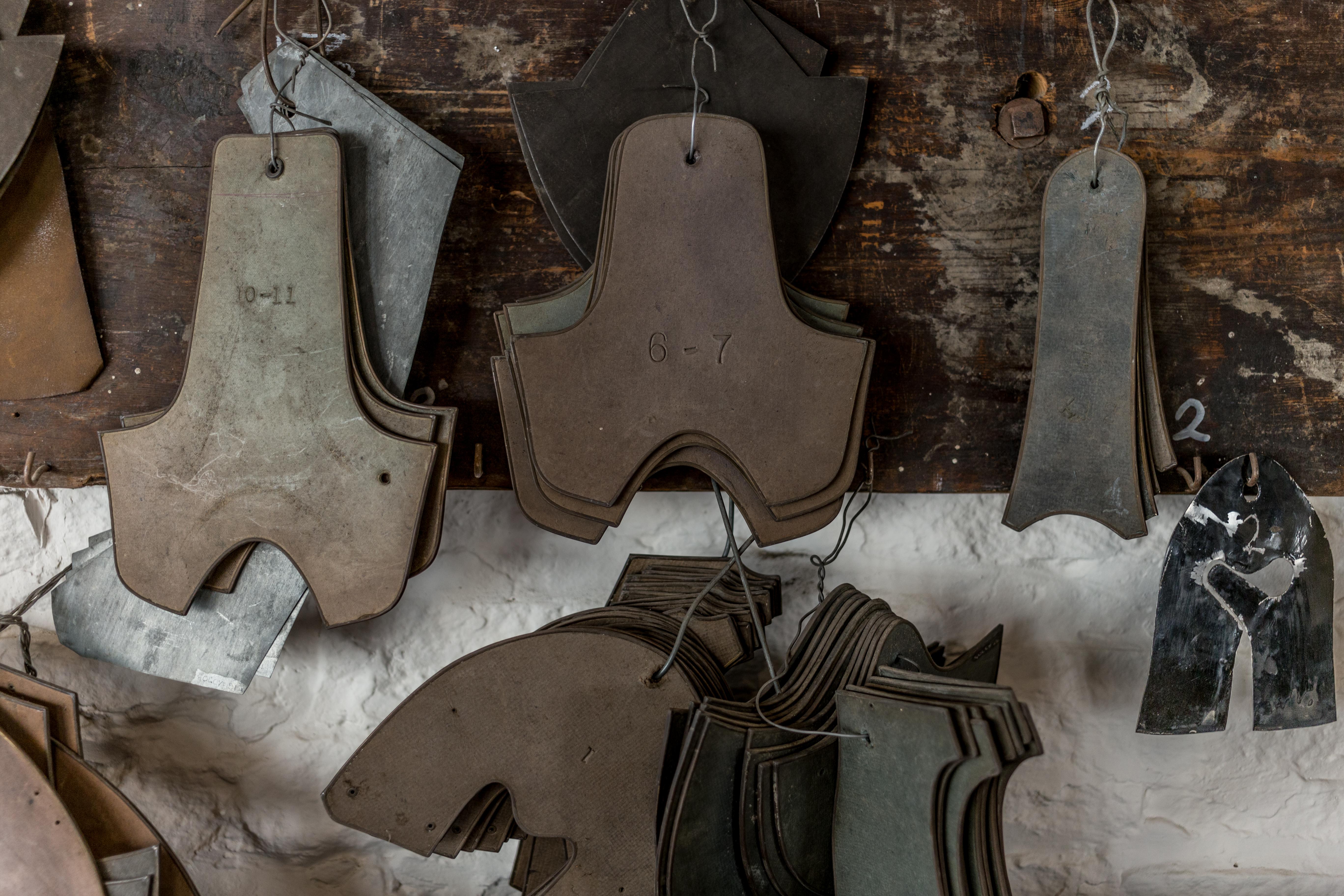Metal templates used for cutting out leather uppers in a process called ‘clicking’. Different sized templates were used for different sized clogs!