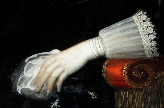 Detail of a portrait of Lady Bennet hung on the Oak staircase at Temple Newsam. The artist and date of the painting is not known but has been shown in inventories from 1688