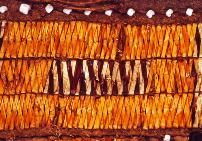Detail of shirt made for a Native American warrior living on the Great Plains in North America. The shirt honours the wearer’s victories in war. The painted figures represent the many enemies that this warrior has overpowered, whilst the hoof prints symbolise the horses that he has captured and distributed among his people.