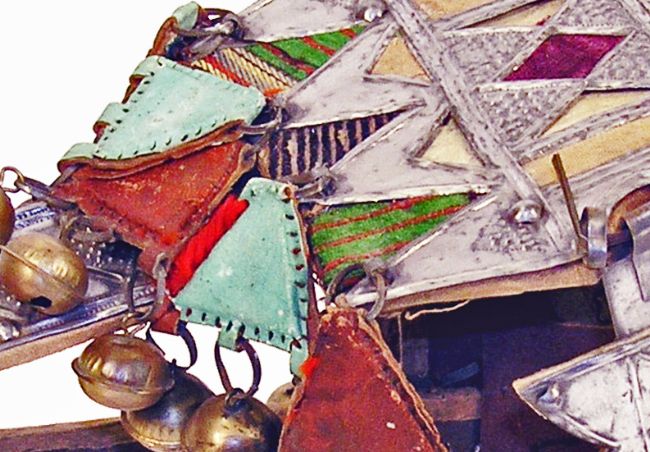 Detail of an African horse’s headdress which would once have been part of a set of parade or show armour rather than being used in battle.
