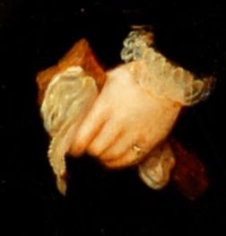 Detail of gloves taken from a portrait of Henry Lord Darnley painted by Rhoda Sullivan in 1894. It is a copy of the original Tudor painting by Hans Eworth from the late 1500's. The original painting now hangs in Windsor Castle