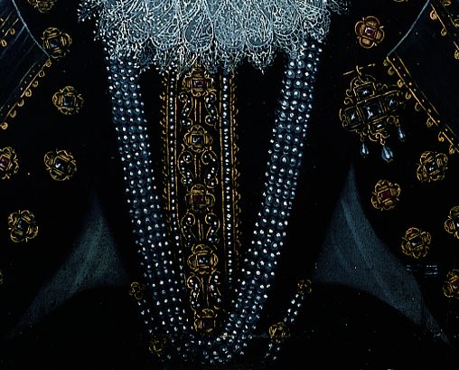 Detail of the bodice from a copy of the original painting of Queen Elizabeth I by John Bettes