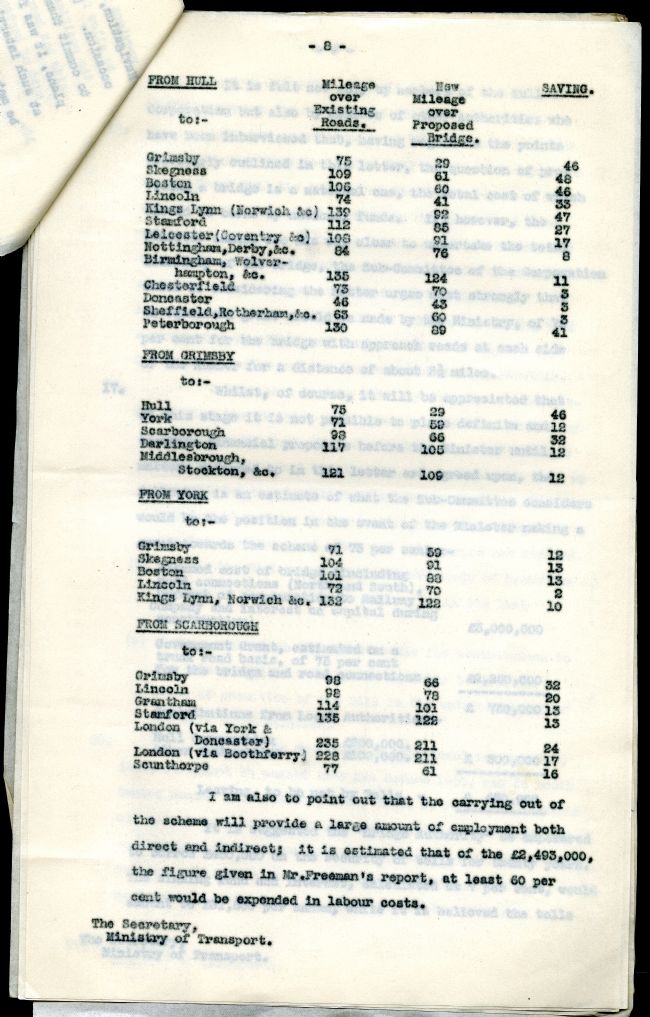 Tables Showing Distances Saved by Building Humber Bridge