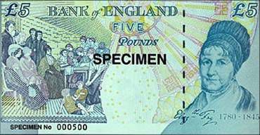 Elizabeth Fry on the 2002 -2016 Five Pound Note