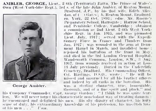 Extract about George Ambler from the book The Roll of Honour 1914-1924.