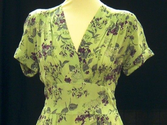Green rayon crepe dress from the M&S Company Archive Utility Wear collection. Clothes rationing started in June 1941 and M&S worked hard to provide clothing that conformed with the CC41 regulations, but that was also well designed and attractive