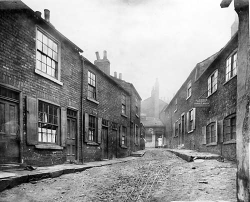 In the 18th and 19th Centuries, people lived in cramped houses, with rough roads and poor sanitation. This photograph shows Tunstall's Fold, Leeds, in 1901. These houses were later demolished because they were judged 'unhealthy' © Leeds Library and Information Service