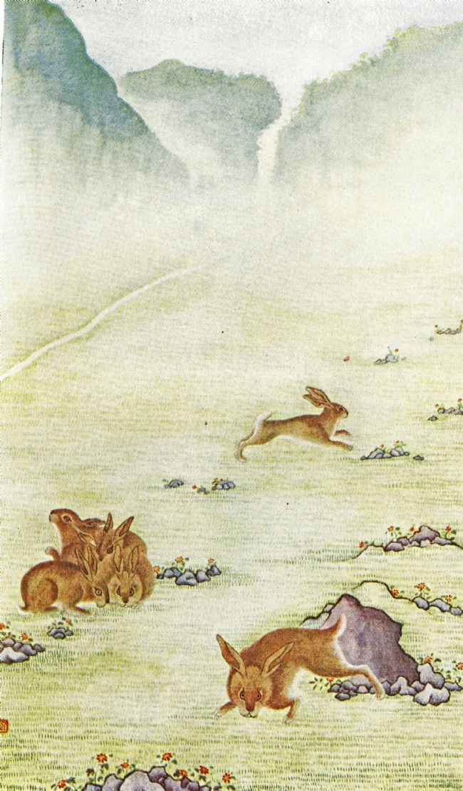 Illustration from 'The Silent Traveller in the Yorkshire Dales', written and illustrated by Chiang Yee in 1940. This view of the Yorkshire moors shows scant vegetation and looming cliffs, but the style of illustration makes it difficult to place the location as England!