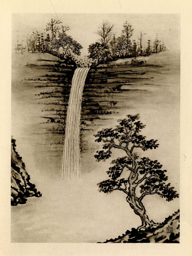 Illustration from 'The Silent Traveller in the Yorkshire Dales', written and illustrated by Chiang Yee in 1940. Although this was drawn in Yorkshire, the style of the drawing makes it look like a Chinese landscape.