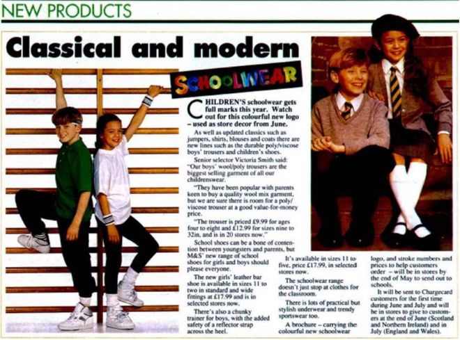 Schoolwear article from St Michael News, May 1992. A section of the text reads:
