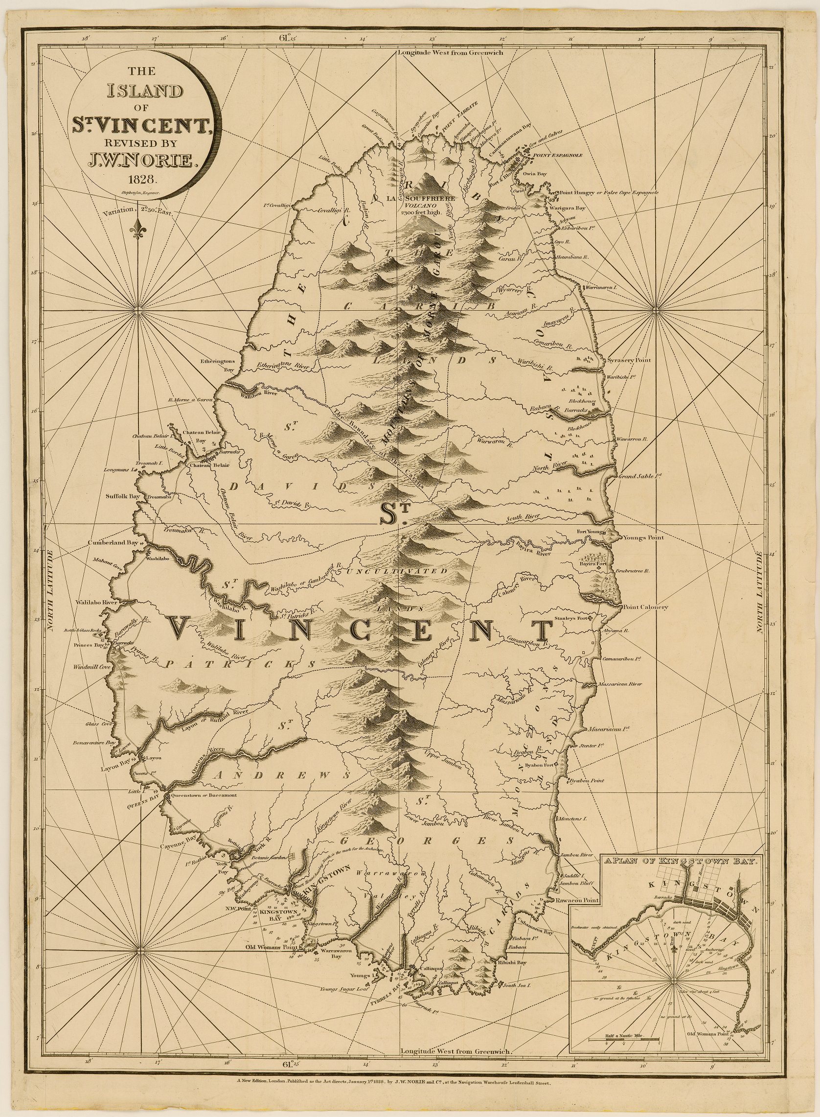 This topographical map of St. Vincent was drawn in 1828.