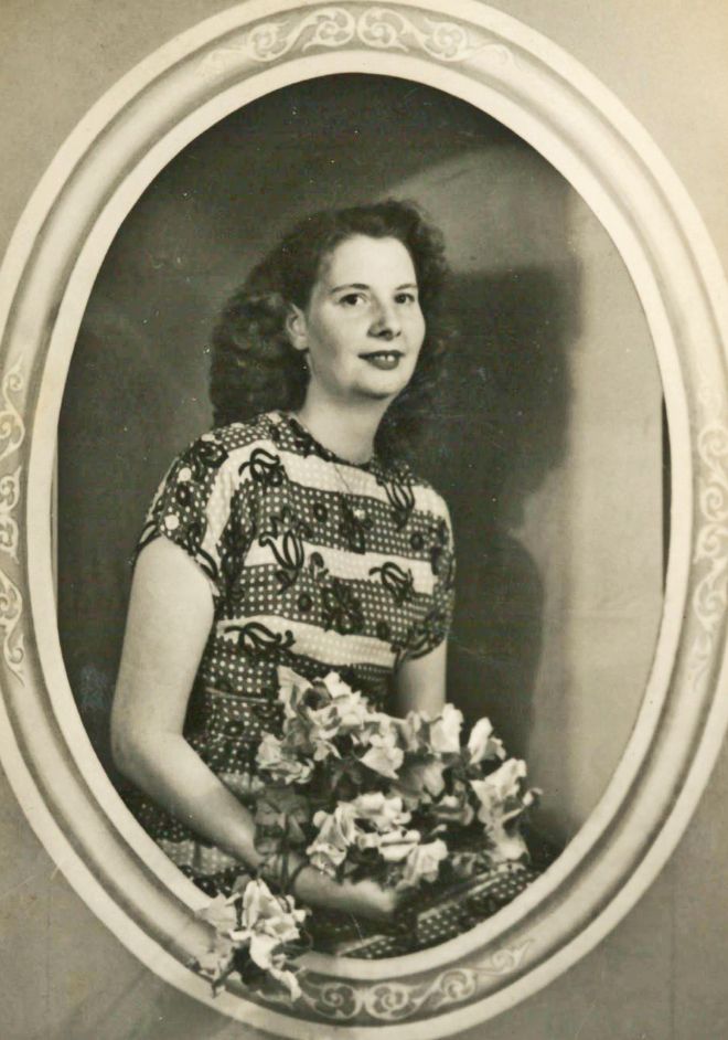 This is Mrs Edwards who started worked at the M&S Dudley store age 14, and worked for M&S for 40 years. In this photograph she is wearing an M&S dress