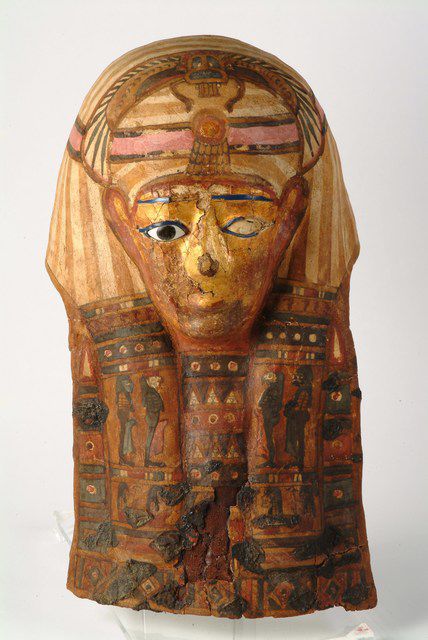 Mummy Mask made out of cartonnage - layers of linen or cotten coverd in plaster. This mask dates to c.100 BCE, making it over 2000 years old.