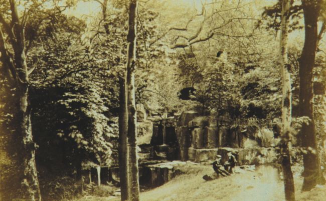 The Wilderness Garden, created in the 1830s at Shibden Hall. John and Charles Lister can also be seen in the picture