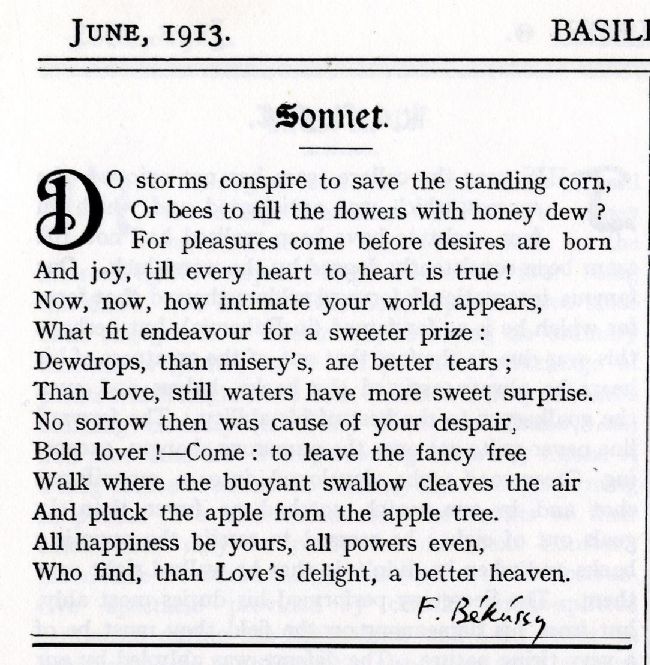 Ferenc Békássy’s ‘Sonnet’, from Basileon June 1913