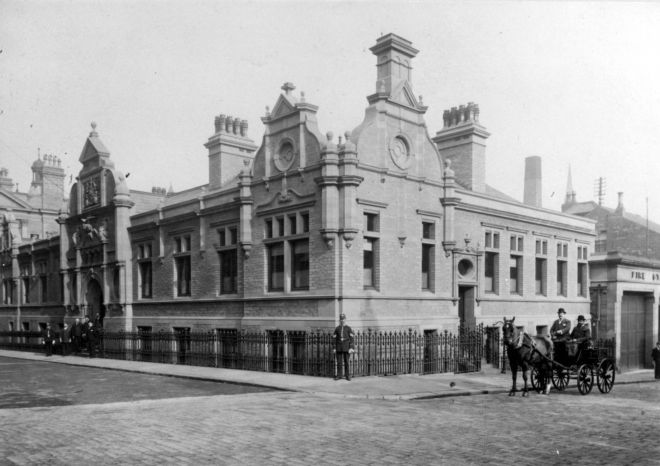 Peel Street, Huddersfield, showing the Police offices in the 1890s